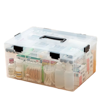 Taşınabilir şeffaf dikdörtgen tıp organizatör bölmesi ile kollu kutu aile acil tıbbi seyahat kiti hap durumda